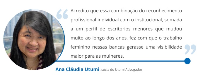 Ana Cláudia Utumi, sócia do Utumi Advogados e professora do Instituto Brasileiro de Direito Tributário (IBDT), destaca que essa dinâmica tem sido um fator essencial para esse aumento nas admirações femininas. Segundo a sócia, a proximidade inerente ao modelo com os clientes, somada à busca feminina por protagonismo em eventos e debates acadêmicos, consolidou um ecossistema que potencializa a visibilidade e o destaque para as advogadas.