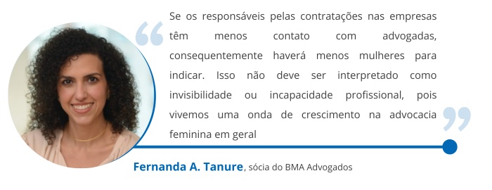 Adriana Coli Pedreira Vianna, sócia-fundadora do Coli Advocacia e com 25 anos de experiência no setor, observa que este é um setor majoritariamente masculino, perfil que se reflete diretamente nos cargos de liderança. Essa disparidade gera vieses de gênero nas contratações de prestadores de serviço, o que ajuda a explicar a redução no reconhecimento das advogadas.