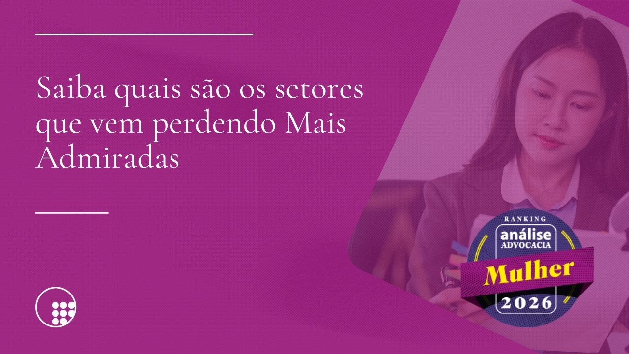 Química e Petroquímica foi o setor que registrou a queda mais expressiva. Em 2023, 120 mulheres foram eleitas Mais Admiradas; em 2026, apenas 75 nomes figuram no ranking pelo ramo de atividade. O dado representa uma retração de 37% no volume de advogadas reconhecidas durante o período.