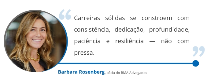 Barbara Rosenberg, líder do ranking full service, é direta: "Invistam na formação, já que o conhecimento é importante diferencial e um ponto de partida — e, em tempos de inteligência artificial, ele se torna ainda mais valioso, ainda que isso possa parecer contraintuitivo." Ademais, ela recomenda ir além do direito: "Leiam sobre economia, política, história e literatura; façam algum curso menos óbvio, aprendam contabilidade, línguas e outros conhecimentos que podem diferenciá-los." Sua conclusão é precisa: