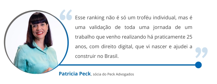 A chegada de Peck ao topo reflete décadas de construção em direito digital. Para ela, o reconhecimento tem função estratégica concreta: "Esse reconhecimento funciona como um selo de confiança, que estamos no caminho certo. Amplia a voz da tese, facilita diálogo com reguladores."