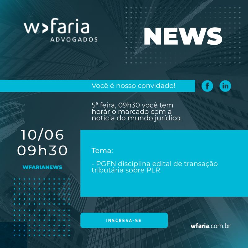 O escritório WFaria Advogados promove uma live para explicar as regras que disciplinam como as empresas podem aderir, até 31 de agosto, à transação no contencioso tributário referente à Participação nos Lucros e Resultados.