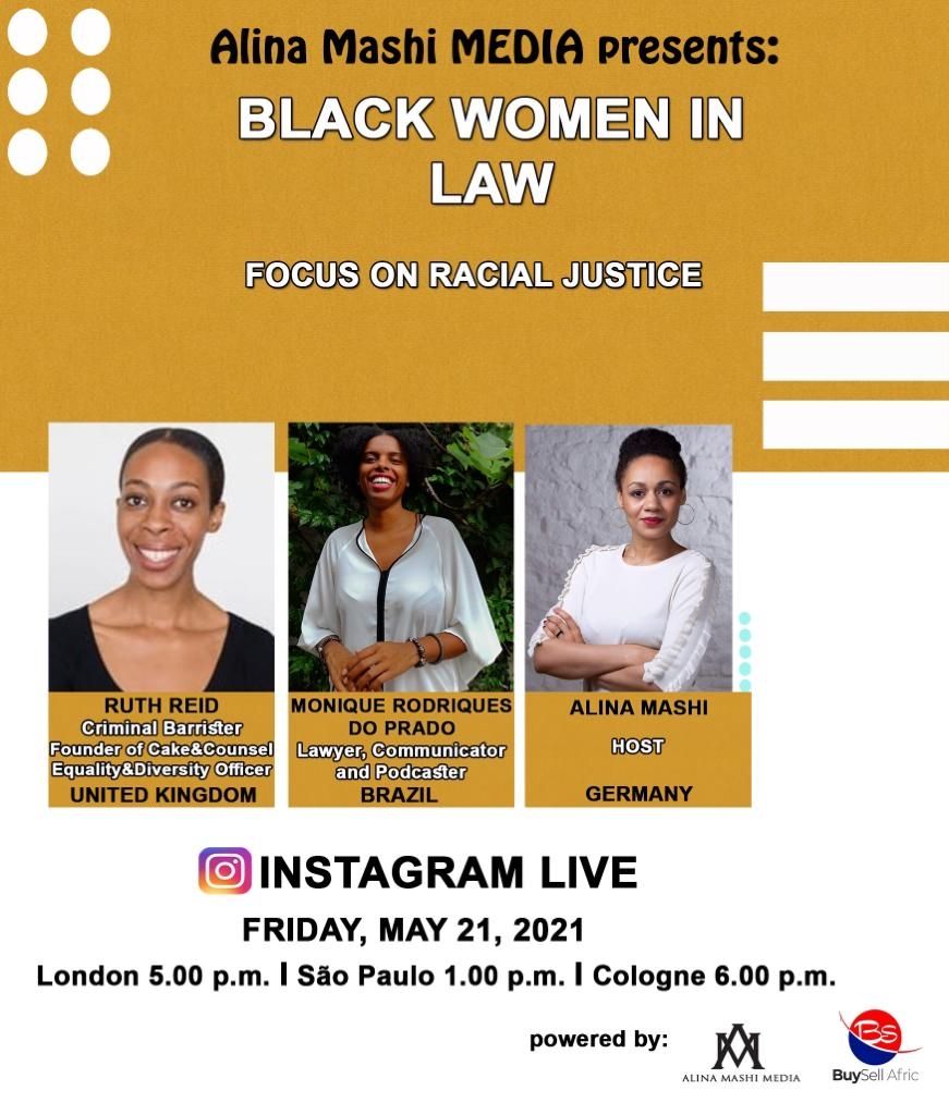 A jornalista internacional Alina Mashi promove uma live para falar de negritude, justiça e igualdade racial, em sua iniciativa Black Women In Law.