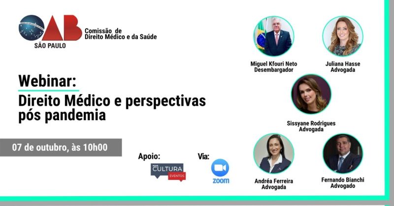 A Ordem dos Advogados do Brasil (OAB-SP), por meio de sua Comissão de Direito Médico, promove um webinar para debater quais são as perspectivas para o Direito Médico, diante dos impactos causados pela pandemia.