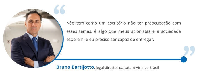Bartijotto complementa que os escritórios precisam estar totalmente atentos às questões de diversidade e inclusão e, além disso, entender o impacto ambiental do negócio."A área da aviação tem impacto ambiental, por isso, temos que olhar a sustentabilidade com muito cuidado."