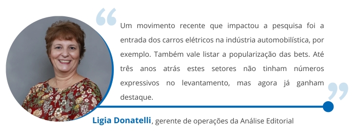 As áreas que refletem os movimentos da economia brasileira, continuam sendo um foco, com destaque para o direito digital, agrário e agronegócio, e a arbitragem, especialidades que Donatelli afirma terem crescido muito nos últimos anos. Além disso, a Análise Editorial permanece atenta a novos setores e tendências que podem impactar a advocacia. Lígia exemplifica: