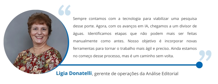 Com duas décadas de experiência à frente da pesquisa, Ligia Donatelli, gerente de operações da Análise Editorial, compartilha os bastidores de um processo que mapeia a admiração no cenário jurídico brasileiro. A pesquisa começou em junho, logo após o lançamento do ANÁLISE EXECUTIVOS 2025, e envolveu a indicação de escritórios e advogados por executivos de grandes empresas. "A partir do momento em que identificamos os executivos responsáveis pelas áreas jurídicas das empresas, iniciamos as entrevistas com a nossa base de pesquisa, pedindo que indiquem até três escritórios e três advogados que mais admiram em cada categoria apurada", explica Donatelli.