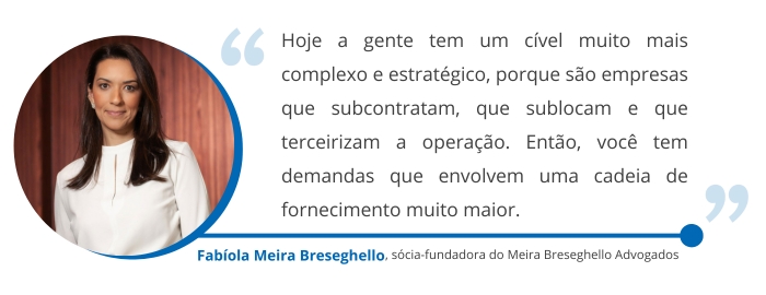 "As demandas das empresas por cível têm ficado muito mais especializadas do que abertas. A empresa sabe que esses processos mais complexos, esses litígios empresariais mais complicados, não adianta ir para a fala comum. Então, eu acredito que a tendência é buscar escritórios menores e especializados", comenta Fabíola.