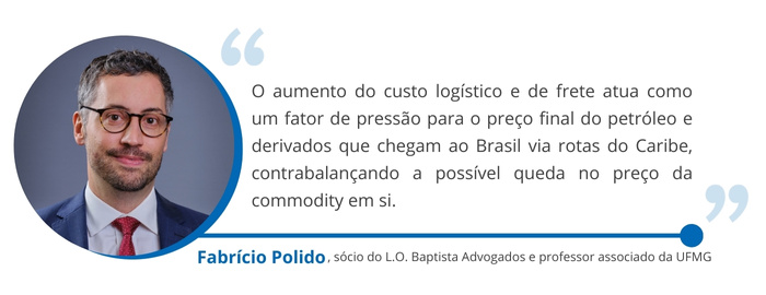 O impacto sobre os preços do petróleo é um dos aspectos mais complexos da crise. Polido aponta forças opostas sobre o preço final. A maior oferta global de petróleo venezuelano pressionaria o barril Brent para baixo no médio prazo. Porém, o aumento nos custos de seguro e frete pela tensão no Caribe encareceria a logística de importação.