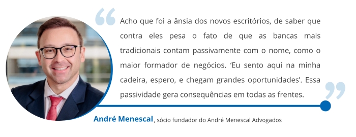 O advogado André Menescal, sócio fundador do André Menescal Advogados — Mais Admirado com apenas um ano de existência — cita que a banca recém formada possui mais ânimo e necessidade de conquistar clientela, o que pode torná-los mais solícitos no atendimento de executivos, enquanto os mais tradicionais contam com sua reputação.
