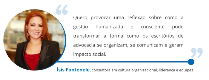 Ísis Fontenele é consultora, autora e professora em instituições renomadas como FGV e USP. Foi presidente da Comissão de Inovação e Gestão da OAB/GO (2016-2021) e é reconhecida por ter criado o primeiro curso de pós-graduação em gestão para advogados no Brasil, além de ter idealizado importantes congressos de inovação jurídica na América Latina.