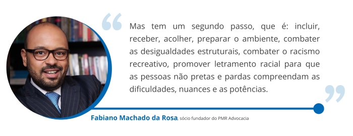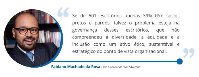 Fabiano Machado da Rosa, sócio fundador do PMR Advocacia, escritório de direito empresarial liderado por sócios negros, é mais incisivo.