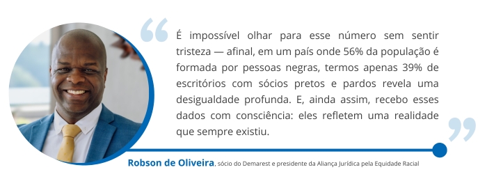 Robson de Oliveira, sócio do Demarest e presidente da Aliança Jurídica pela Equidade Racial, recebe o dado com um misto de tristeza e lucidez.