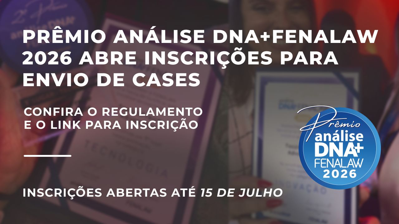 O Prêmio Análise DNA+Fenalaw 2026 já está com as inscrições abertas para o envio de cases. Fruto da parceria entre a Análise Editorial e a Fenalaw, a premiação tem como objetivo reconhecer cases de sucesso desenvolvidos por escritórios de advocacia e departamentos jurídicos que geraram resultados positivos em seus processos internos. Ao destacar essas iniciativas, o prêmio estimula o compartilhamento de boas práticas e contribui para o fortalecimento coletivo do setor jurídico.