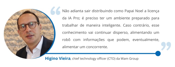 Higino diz que a pulverização de informações é um fator crucial para a individualização, que leva a consultas irregulares por parte dos funcionários. Para o executivo, o melhor caminho para que a implementação da ferramenta desse certo na empresa foi estabelecer um ambiente de infraestrutura offline. Dessa forma, além de evitar o consumo individual, forneceu aos colaboradores acesso a uma conta Pro de IAs corporativas, para que eles não precisassem usar essas ferramentas por fora, e internalizasse toda a produção de material.